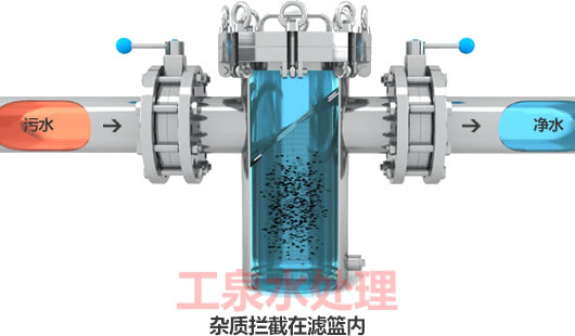 毛發過濾器工作時,介質由進口進入濾網內側,經濾網過濾后進入濾網外側,經出口進入管路系統。當毛發過濾器使用一定時間后由于污物的堵塞書的阻力增大,這時就需要打開過濾器的封蓋,取出里面的濾筒清洗干凈,然后再繼續使用。