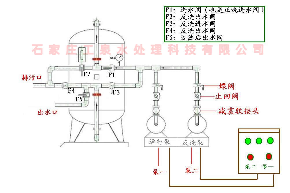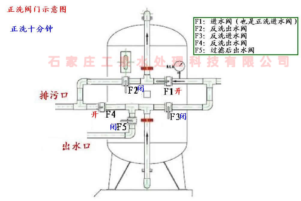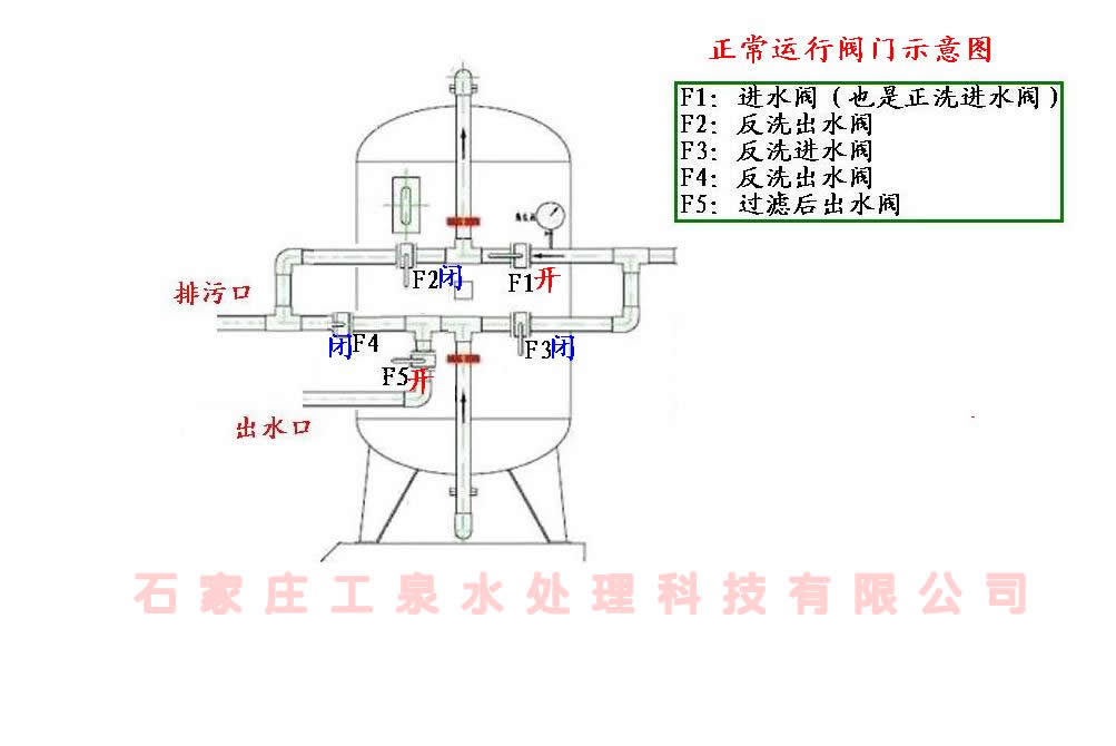 石英砂過濾器正洗反洗閥門操作示意圖: